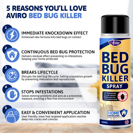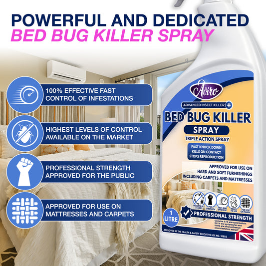 • Aviro Bed Bug Spray - Fast Acting Strong Bed Bug Killer Spray for Immediate Control & Ongoing Prevention. Triple Action Professional Grade Bed Bug Treatment for Use On Hard & Soft Furnishings. 750ml