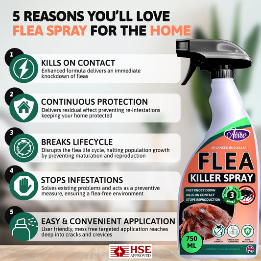 Aviro Flea Spray Treatment - Safe Fast Acting Flea Killer for House