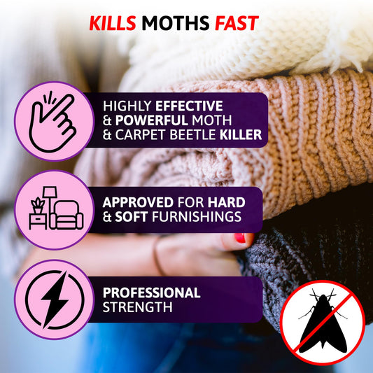 • Aviro Moth Killer Spray - Fast Acting Moth Repellent For Wardrobes, Fabric & Surfaces. Professional Strength Carpet Moth Spray For Immediate Treatment & Ongoing Protection Against Clothes Moths