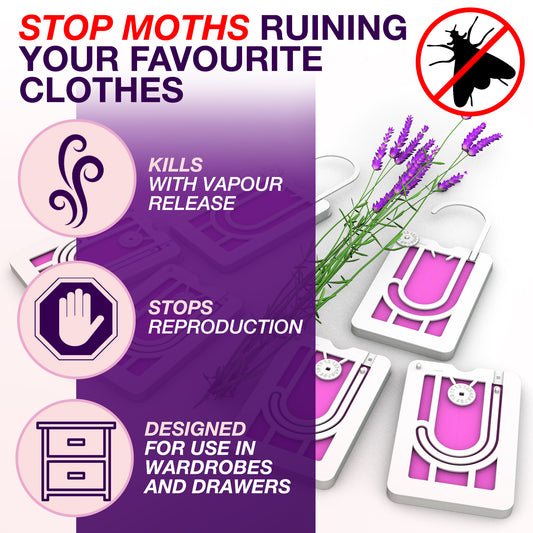 Aviro Moth Repellent for Wardrobes - 6 Moth Killer Hangers Lavendar Scent